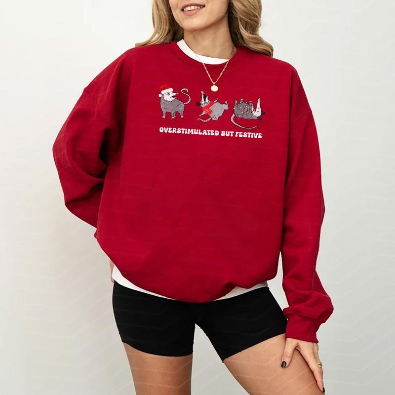 Overstimulated Festive Possum Funny Christmas Meme T-Shirt / Sweatshirt / Hoodie